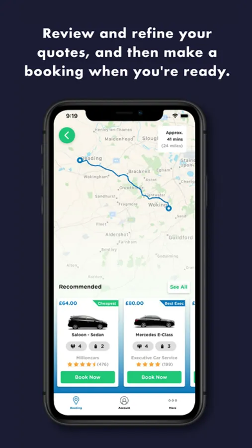 2. Review multiple real-time quotes from taxi and private hire companies, and see how