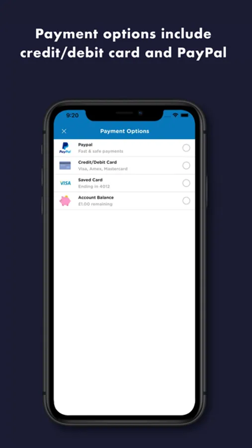 3. Choose your desired method of payment: saved credit card, new credit card, or cash