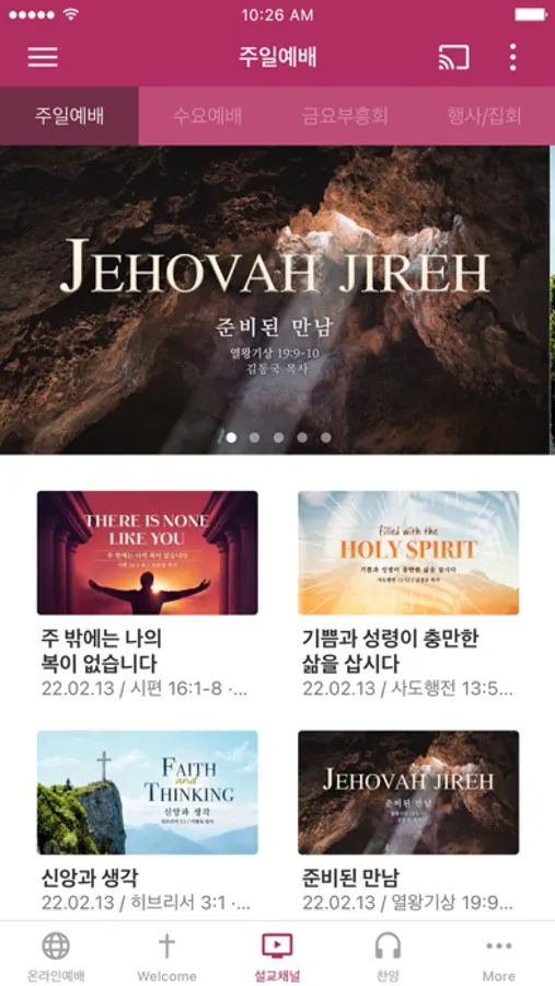 설교채널 : 대영교회의 모든예배의 실황영상을 제공! 데이터 과금을 방지하기 위해 음성 다운로드 기능
