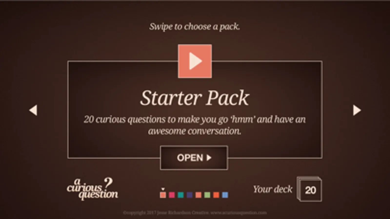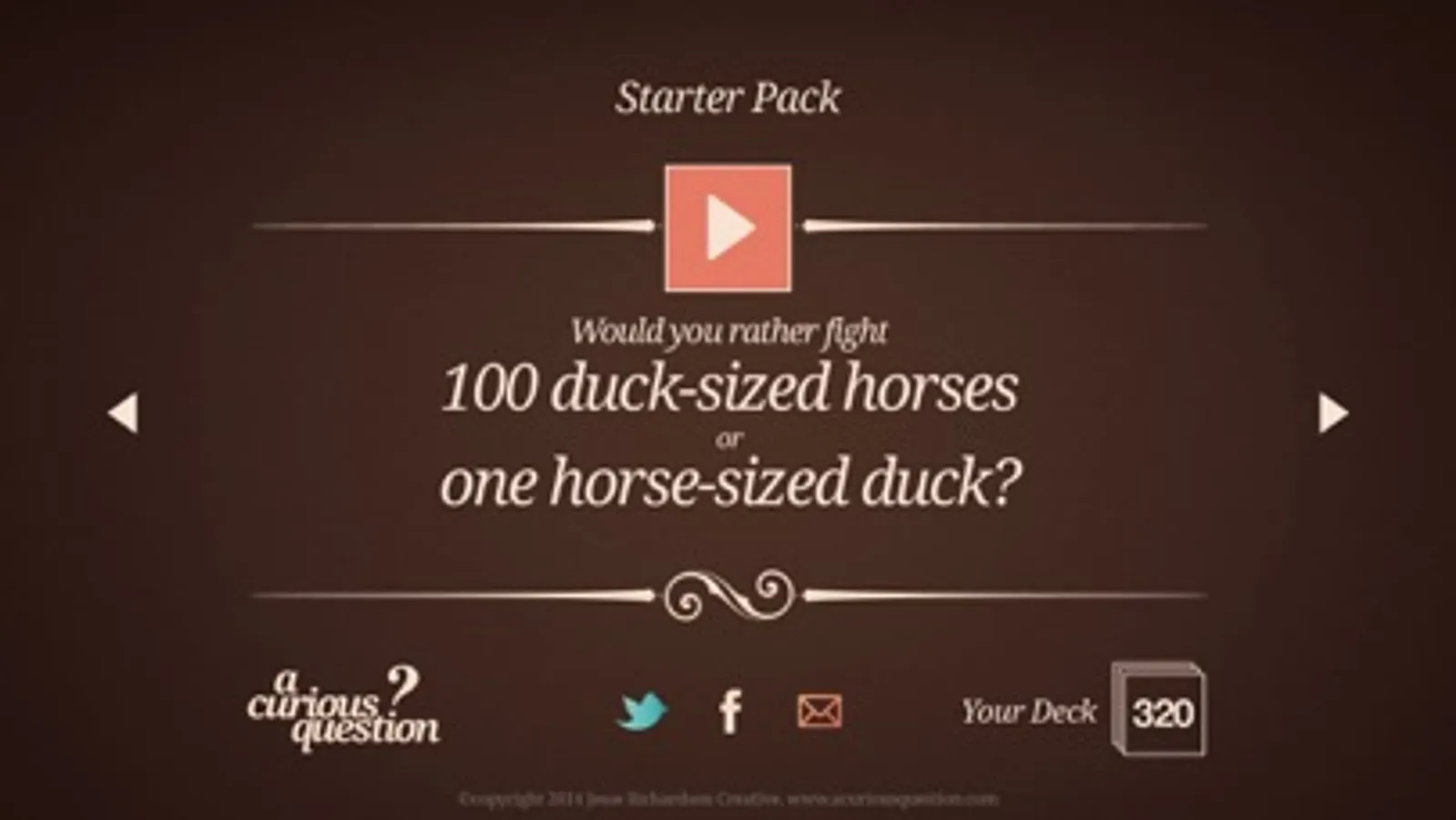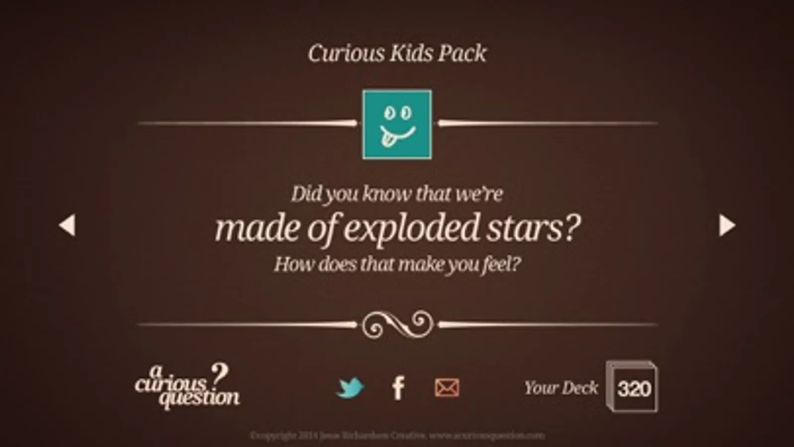Introducing A Curious Question - it’s an app that kick-starts a conversation to an immediately curious place. There’s more than 300 genuinely interesting questions, all designed to make people do that sideways things with their head, where they furrow their brow in contemplation and go ‘hmmm’.
