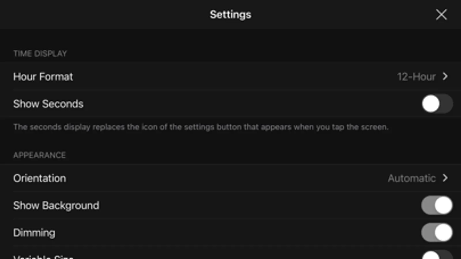 - Option to show seconds when tapping screen