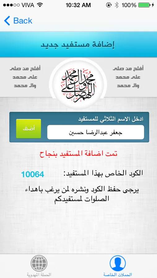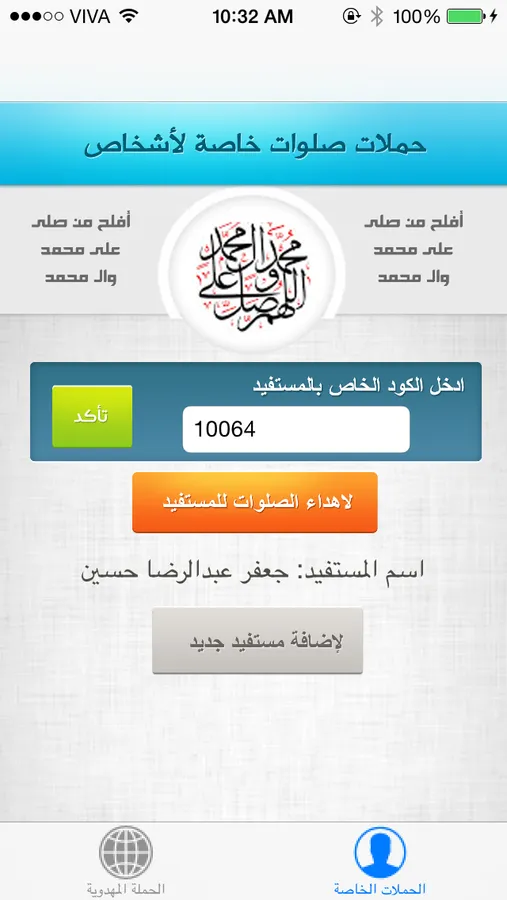 ٥- من خلال البرنامج ضع الكود وابدأ حملة الصلوات