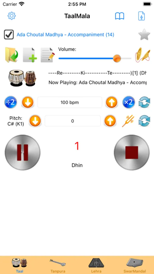 - Taal/Lehra/SwarMandal pad; play any Taal/Lehra/SwarMandal pattern on-demand in live accompaniment