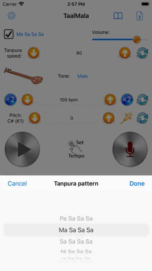 - Adjustable Tanpura tempo and strumming speed of 4 Tanpura strings independently