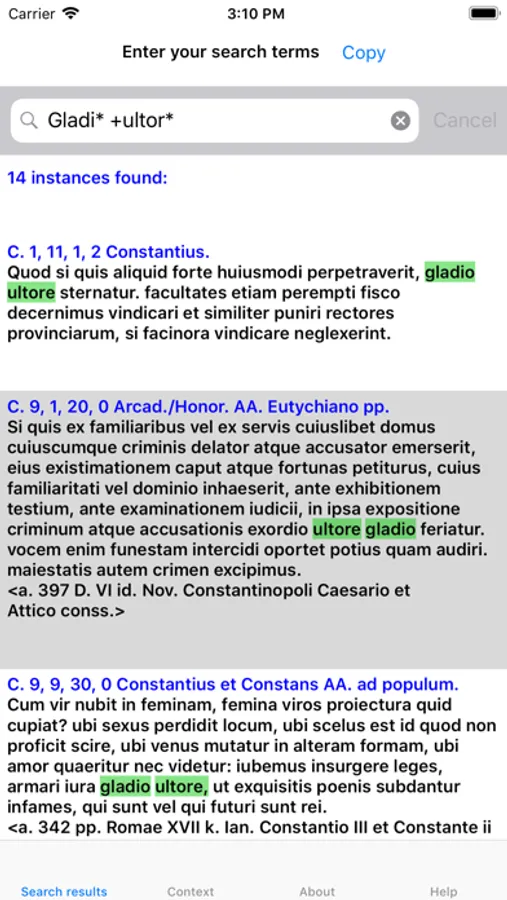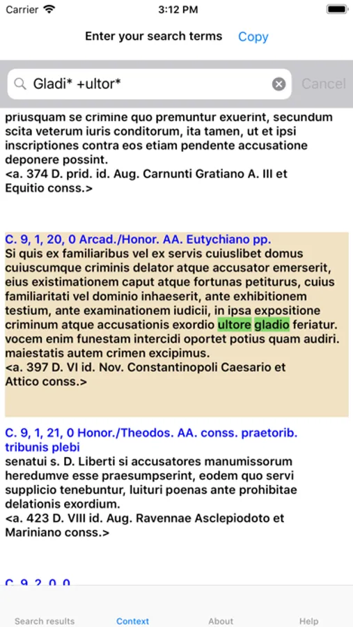 Amanuensis is a search tool for the juristic sources of Latin Antiquity, including the Corpus Iuris Civilis, the Codex Theodosianus, many pre-Justinianic authors and several Germanic law codes. Amanuensis uses, by courtesy of Hofrat Dr. Josef Menner, an enhanced, capitalized Romtext database.