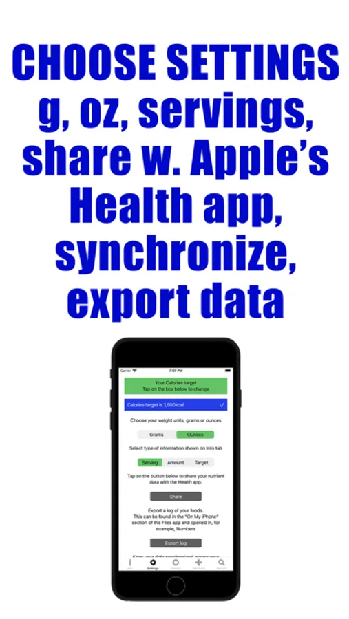 Synchronize the app (on the Settings screen) if you have an app bundle so you only need to record your food and beverage intake once and it will be shared with all apps. Record your food and beverage intake using the barcode scanner, dictation, by favoriting foods, or by using the search function and use the serving sizes provided (mainly those suggested by USDA Food Data Central) or change to your serving size. Your progress towards your target daily intake will be visible immediately in real-time. You can also view your progress over time on the Month view dashboard, and export food diaries and protein intake into a spreadsheet for your own information or to share with healthcare providers.