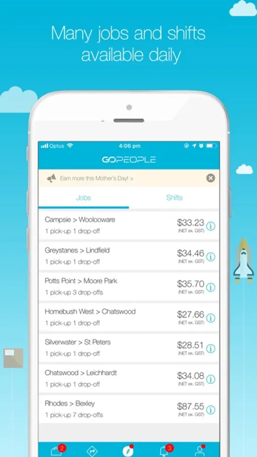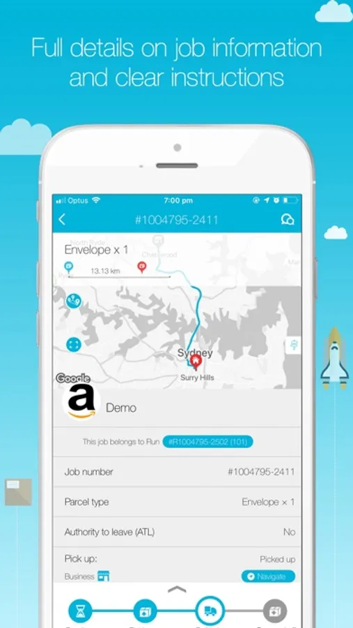 Customers (Senders) book their deliveries and pay via the Web based or smartphone app. A Runner bids for a job via the smartphone app and the Go People system selects the most suitable Runner. The selected Runner then collects the consignment from the pick-up location and delivers it to the recipient.