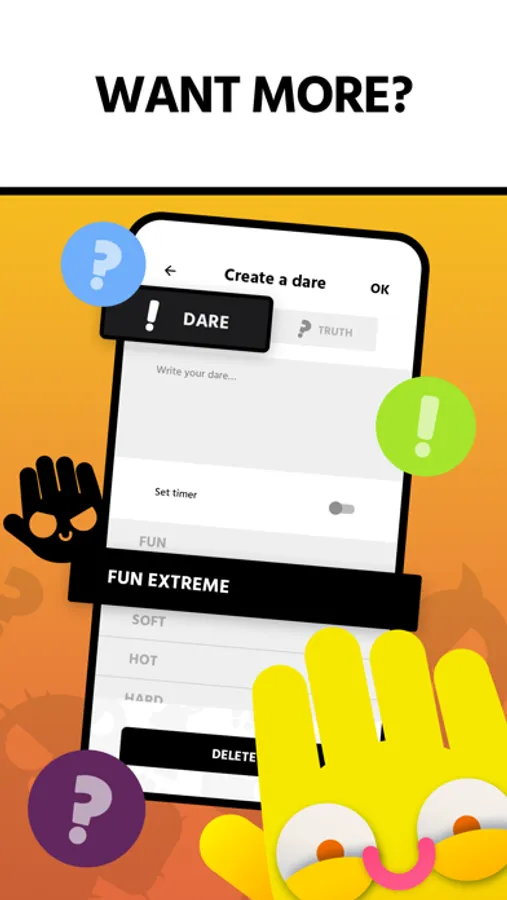 Want to take things a step further? Challenge your friends with hot dares and discover their craziest secrets with racy truths!