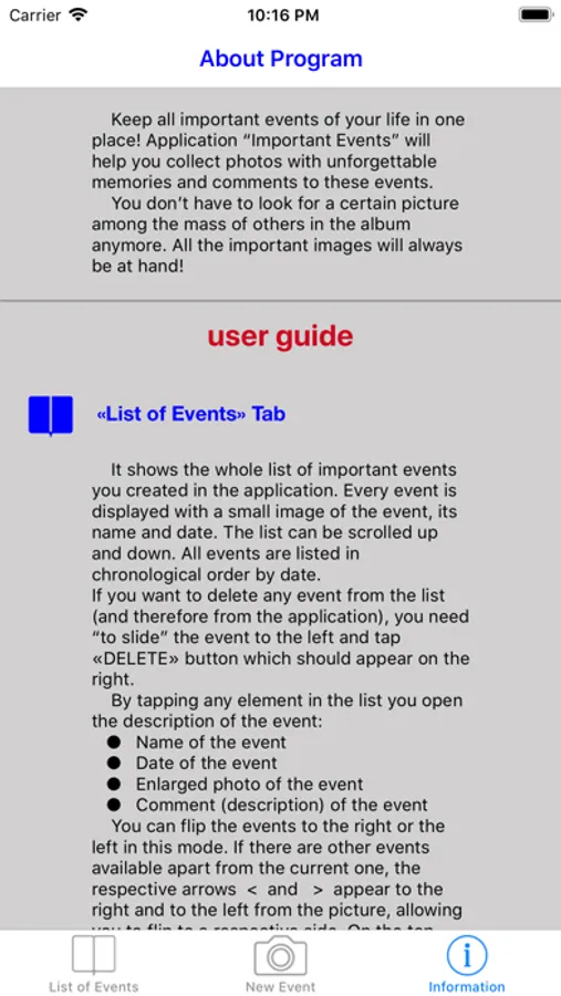 Keep all important events of your life in one place! Application “Important Events” will help you collect photos with unforgettable memories and comments to these events.