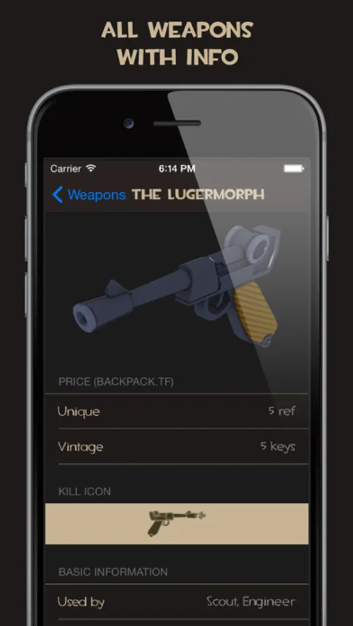 It’s an ultimate solution for any player to Team Fortress 2™ from Valve©. There’re everything you need for a good game. App completely works offline.
