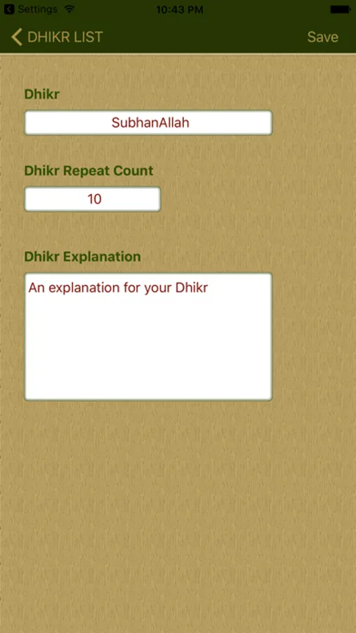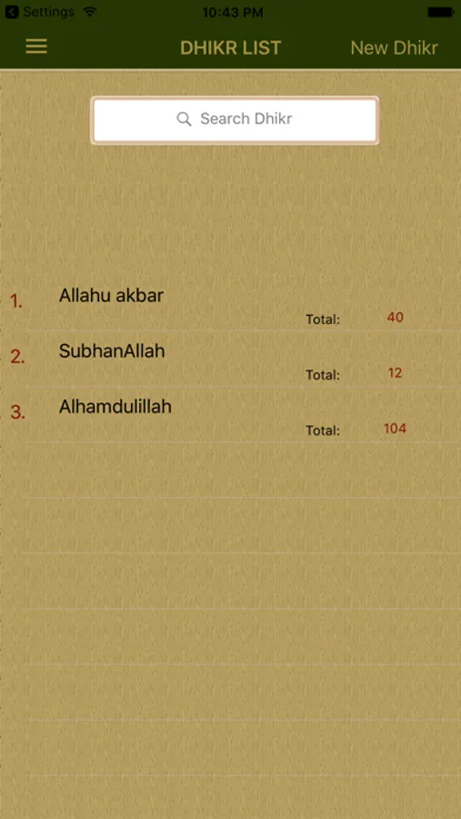 You can save dhikr list for to use anytime this list and total dhikr counts.