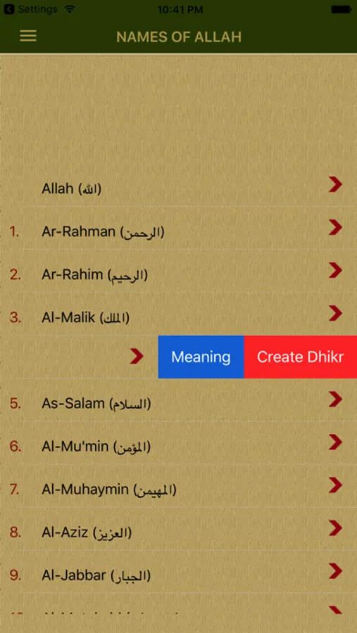 You can find 99 Names of Allah(Asmaul Husna) and meanings, dhikr counts and useful a dhikr counter design in our application.