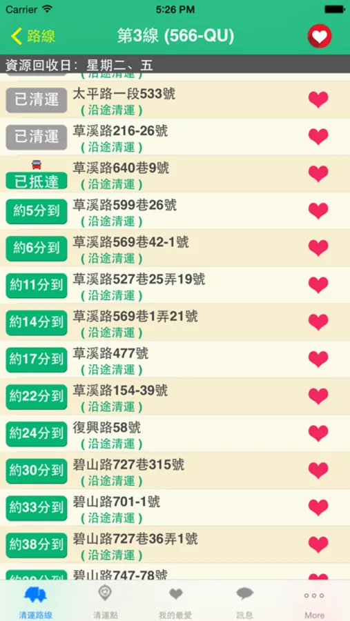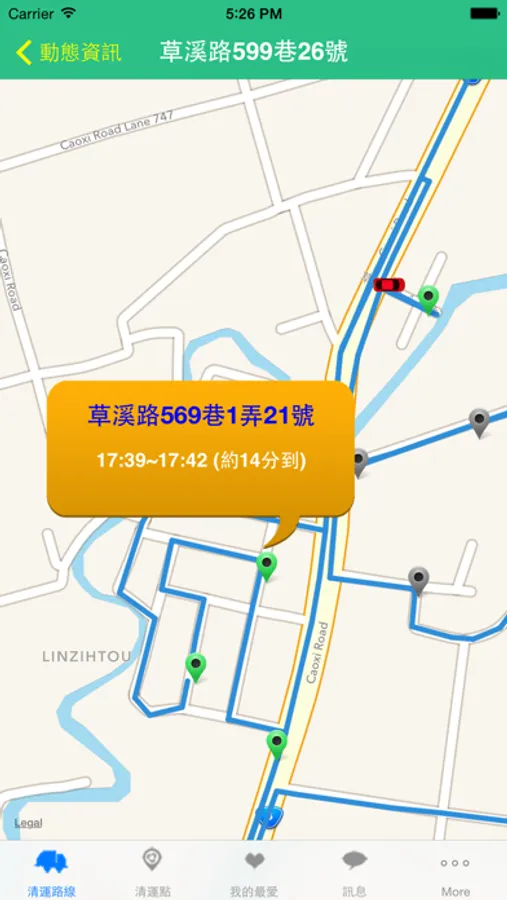 1. 垃圾車位置、狀態及預計抵達時間查詢