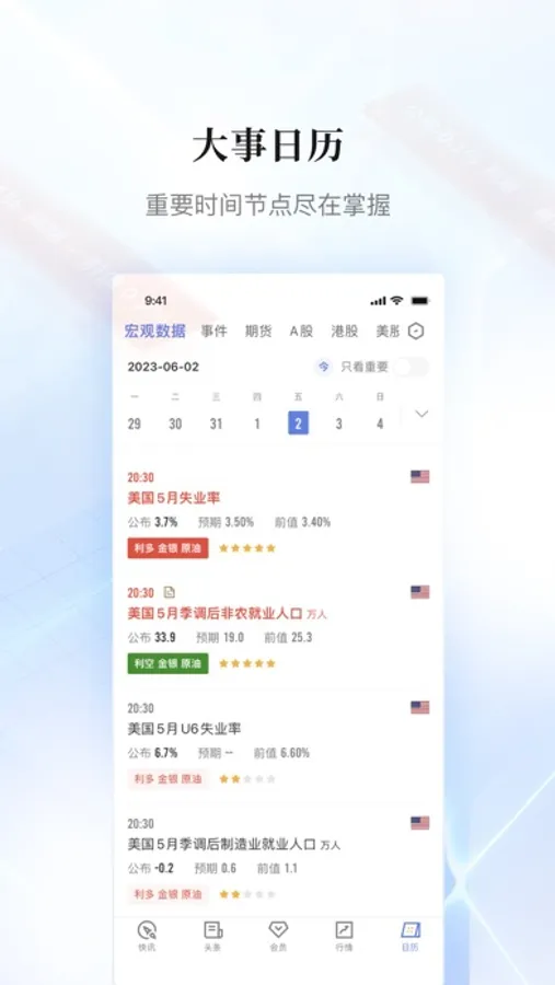 罗列每日重点财经数据或事件,开启定时提醒,重点交易行情不容错过。