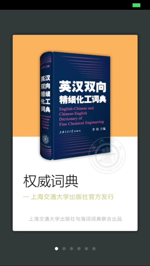 《英汉双向精细化工词典》2009年9月第1版手机版同步发行。收录了近4年精细化工相关领域的近百种中文核心期刊和50余种英文SCI或者EI收录期刊上发表的论文关键词中精选出的词汇,较全面反映国内外精细化工领域的最新发展,英汉、汉英双向收词40000余条,是精细化工专业必备词典。海笛科技携手上海交通大学出版社官方权威正版发布,具备手机上最便捷的查词功能(摄像头查词、语音查词、通知栏快捷查词等),还有清晰发音、生词收藏、生词辅助记忆等学习功能。选择高品质词典和词汇手册,学习更有保障!(版权所有,盗版必究)