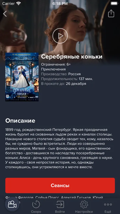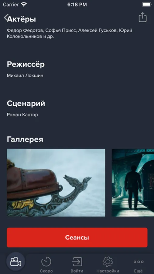 - информация об актуальных и ближайших релизах с описаниями, трейлерами и кадрами из фильмов