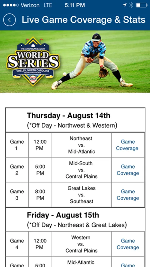 The American Legion World Series App is your mobile companion to help you follow your favorite American Legion baseball teams as they compete to reach the American Legion Baseball World Series. The official ALWS application offers the following features:
