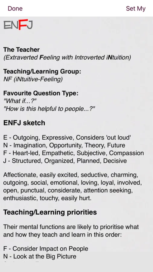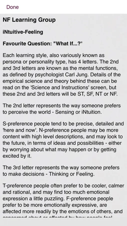 This app helps Teachers... and Students... to gain that awareness and understanding. By applying the well-understood principles of Jungian psychology to learning.