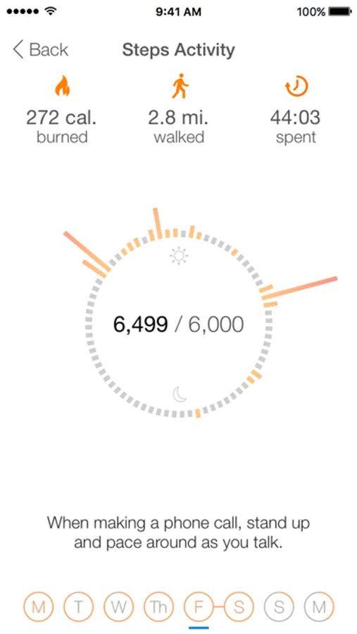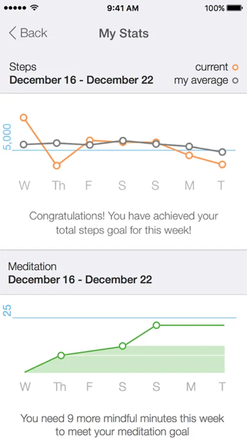 • Set a personalized daily steps and a weekly mindful meditation goal