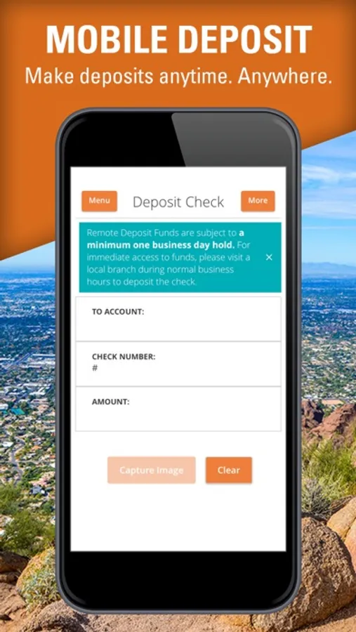 • Remotely deposit checks using your phone’s camera.