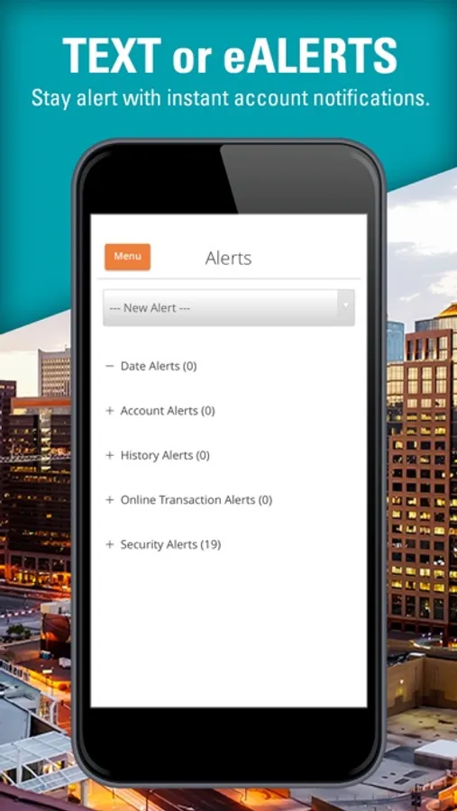 • Set up text or email alerts to warn you of account status changes, help you avoid fees and be alerted to suspicious account activity.