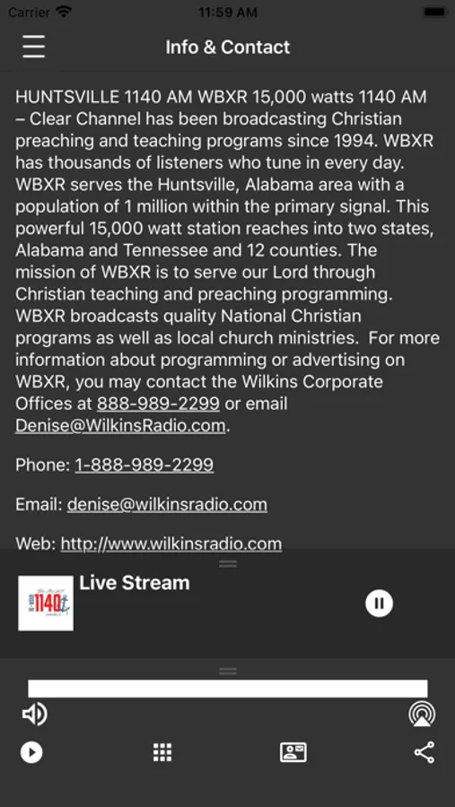 WBXR 15,000 watts 1140 AM – Clear Channel has been broadcasting Christian preaching and teaching programs since 1994. WBXR has thousands of listeners who tune in every day.