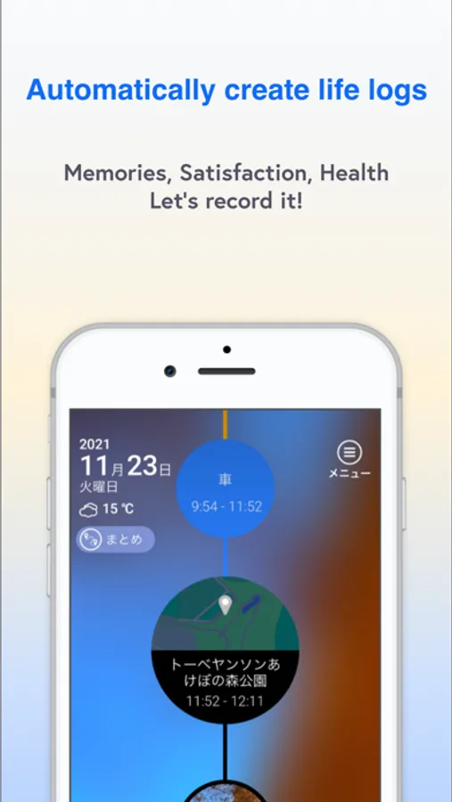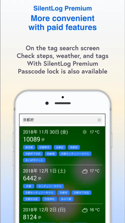 Simply install this app and you’ll be ready to automatically record your steps and distance walked. You can also freely add beautiful pictures of the places you went and things you saw.