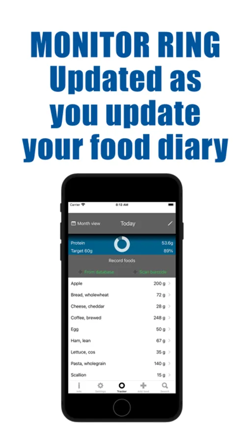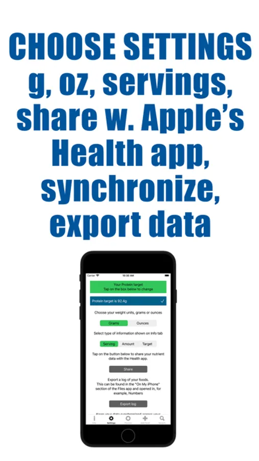 Synchronize the app (on the Settings screen) if you have other First Line Medical communications nutrient counters (eg in an app bundle) so you only need to record your food and beverage intake once and it will be shared with all apps. Record your food and beverage intake using the barcode scanner, speech recognition, by favoriting foods, or by using the search function and use the serving sizes provided (mainly those suggested by USDA Food Data Central) or change to your serving size. Your progress towards your target daily intake will be visible immediately in real-time. You can also view your progress over time on the Month view dashboard, and export food diaries and protein intake into a spreadsheet for your own information or to share with healthcare providers.