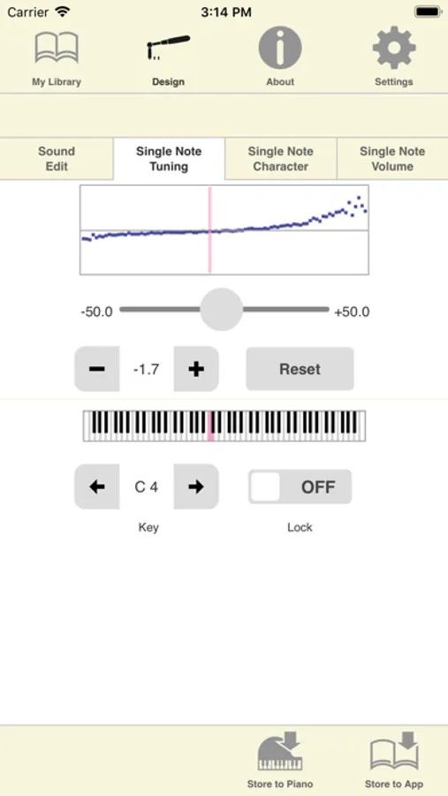 - Graphically adjust the pitch, level, and tonal character independently for each of the piano’s 88 notes.