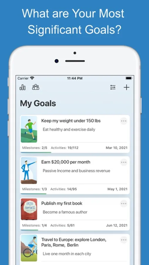 Goals Wizard with is a powerful goal setting program and daily planner that will help you discover, plan, and achieve your most important personal and professional goals.