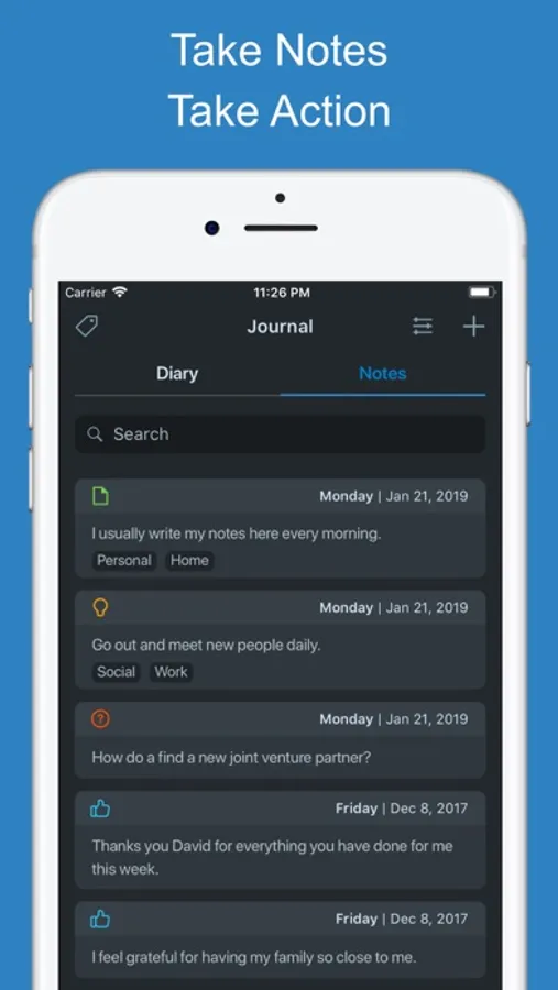 > Journal and diary to record your daily experiences, thoughts, insights and observations