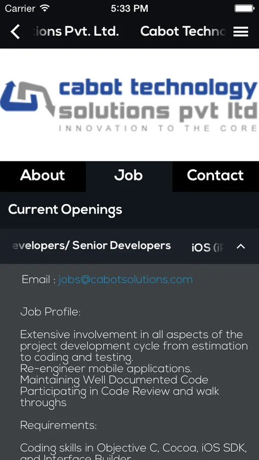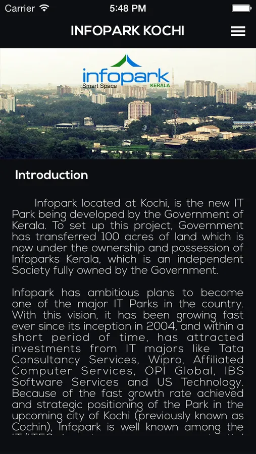 Infopark app developed by Cabot Technology Solutions is the very first major initiative to provide comprehensive information on the companies, facilities, jobs and other places of interest in the park for the present and prospective infoparkians as well as visitors to the park on their finger tips. You can search for details on any companies, buildings, etc and their location which can be viewed on map. Now job search is made much easier, all the job openings in Infopark is just a tap away. Infopark app is thus developed with a wealth of useful and up to date information for the public which can be accessed on the go.