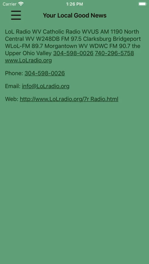 Catholic Radio broadcasting across West Virginia including NorthCentral WV, Grafton, Morgantown, Clarksburg-Bridgeport and the Upper Ohio Valley Wheeling, Moundsville, St Clairsville and streaming wherever internet is available.