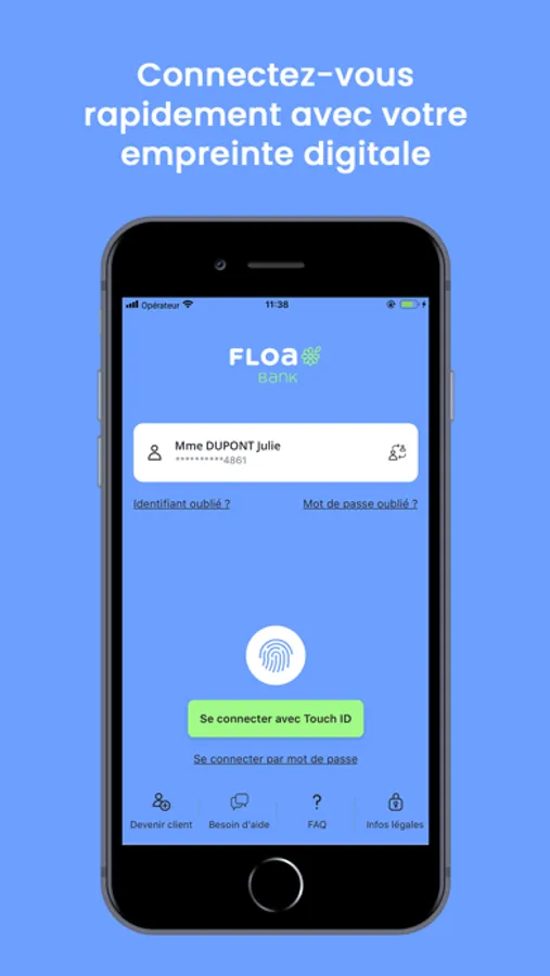 Avec l’appli de votre banque en ligne FLOA Bank, connectez-vous rapidement avec votre empreinte digitale