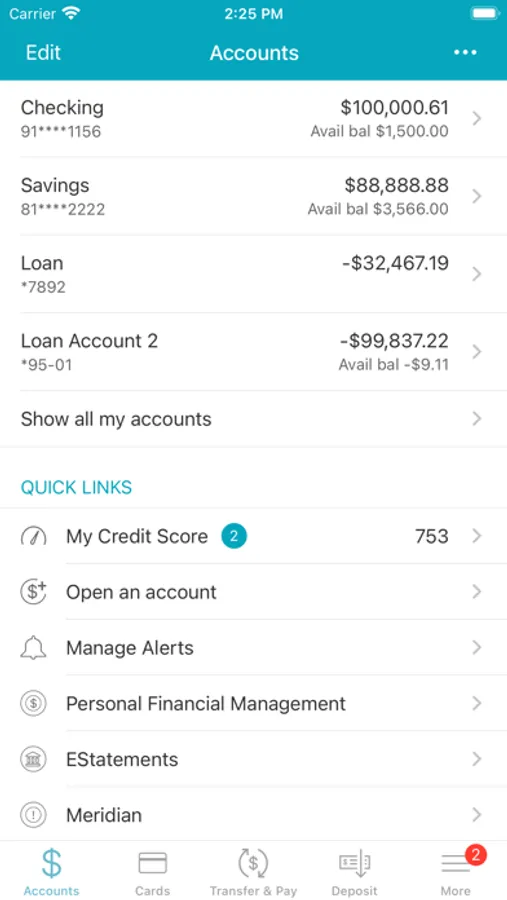 * transfer money to other First National accounts