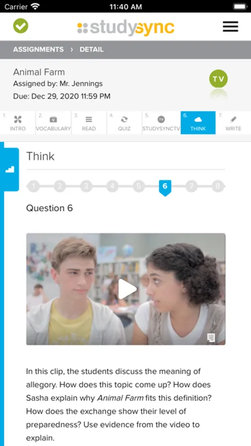 **** IMPORTANT **** This is a companion student app for the StudySync Language Arts content. You must have an existing student account to use this app. You can find your Mobile Access Key, needed to use this App, on your Settings page when logged in to the StudySync browser-based application.
