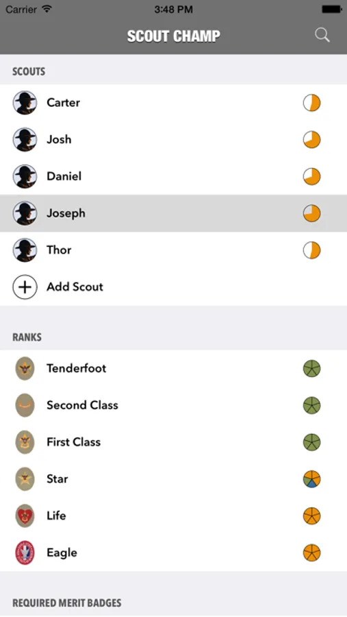 Designed and built by a scoutmaster specifically to help scouts advance without bogging them down with paperwork. It will quickly give you a view into the status of your troop broken down by scout, rank, merit badge, and even by each requirement. (It can be really handy for parents too)