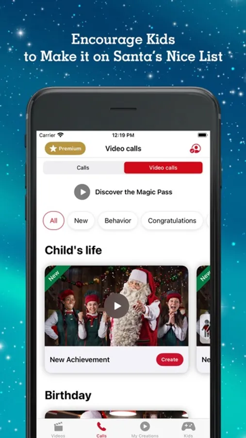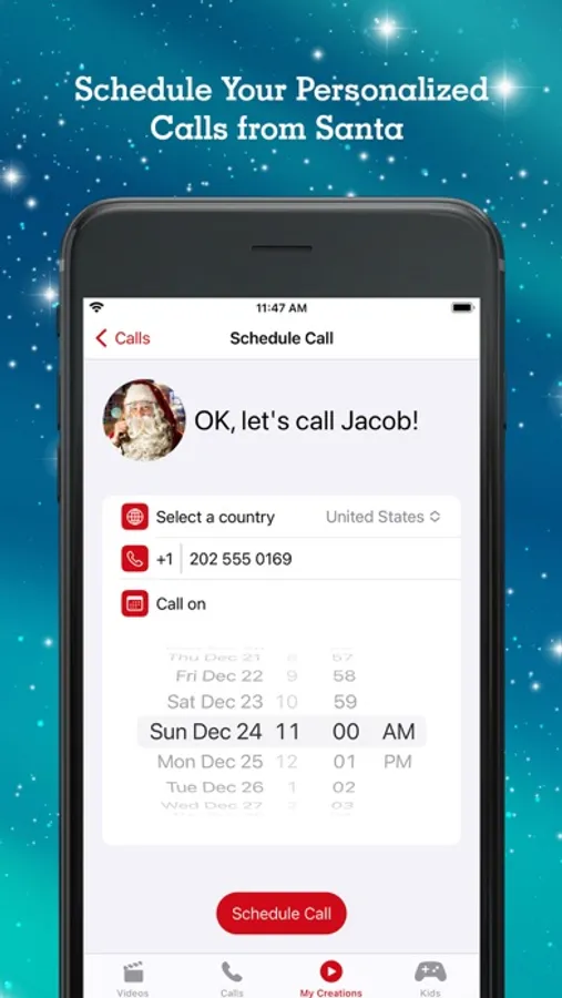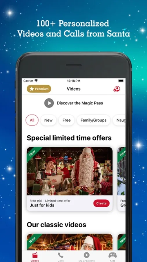 The original Santa app since 2008. Unlike competing apps, you can enjoy the free trial ad–free and access over 100 videos, voice calls, and video calls for kids and grown–ups, for a variety of occasions: improving / congratulating behaviour, celebrating birthdays, and more!