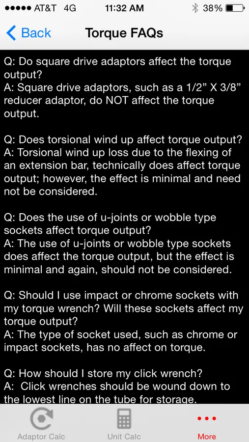 Snap-on “Torque Source” is a convenient resource tool for torque wrench users. This app includes two torque calculators, one for torque unit of measure conversion and another for adjusting the torque wrench setting when using an adapter – and therefore changing the overall length in the horizontal plane from the middle of the handle to the center of the faster. This application also includes torque wrench usage helpful hints and other Snap-on links.