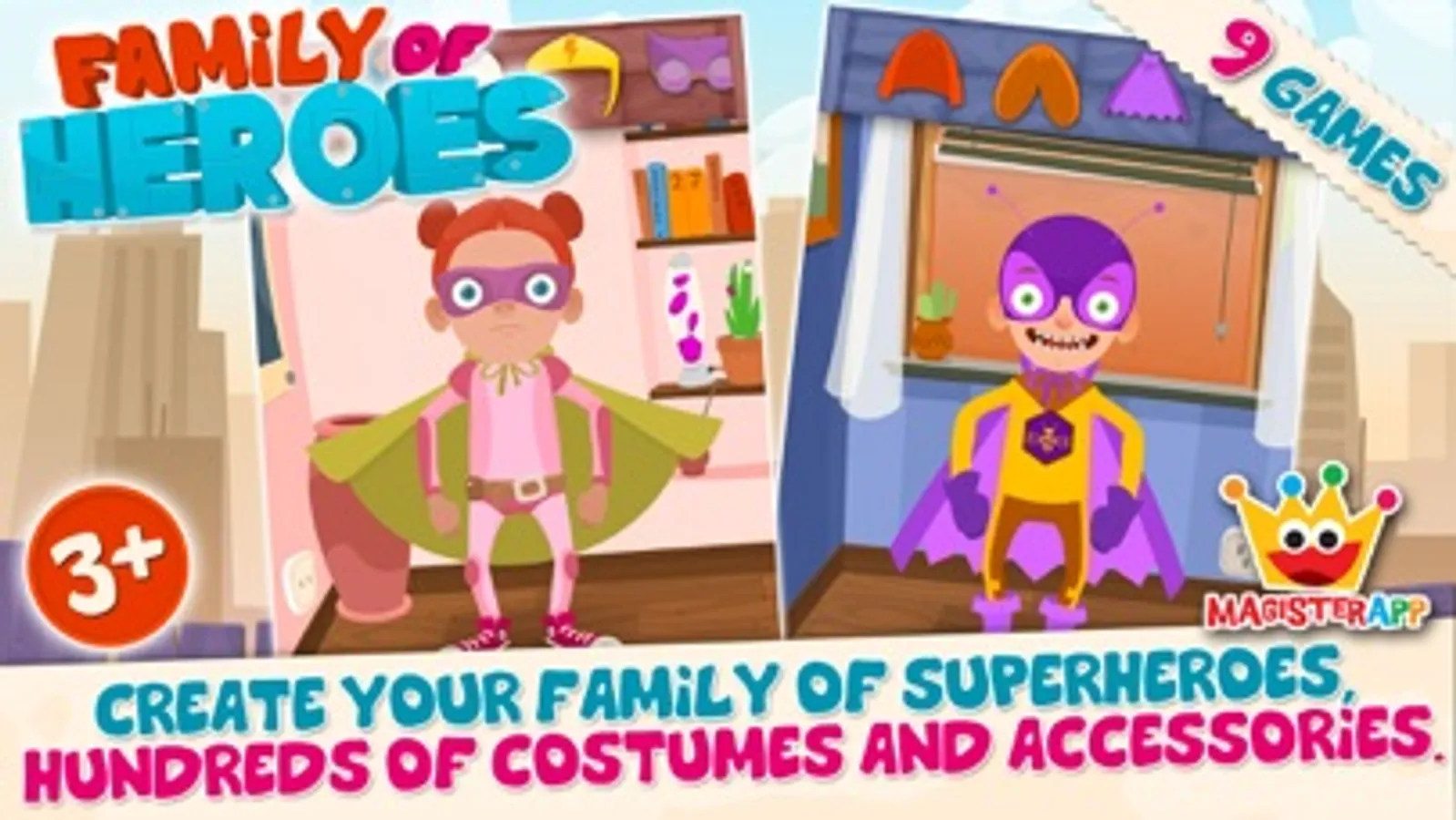 - Create your family of superheroes! Mum, Dad and the kids, all to be personalized!