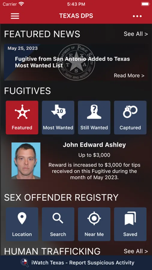 With the Texas DPS mobile app, you can easily explore the state’s Sex Offender Registry, Texas 10 Most Wanted lists, and much more.