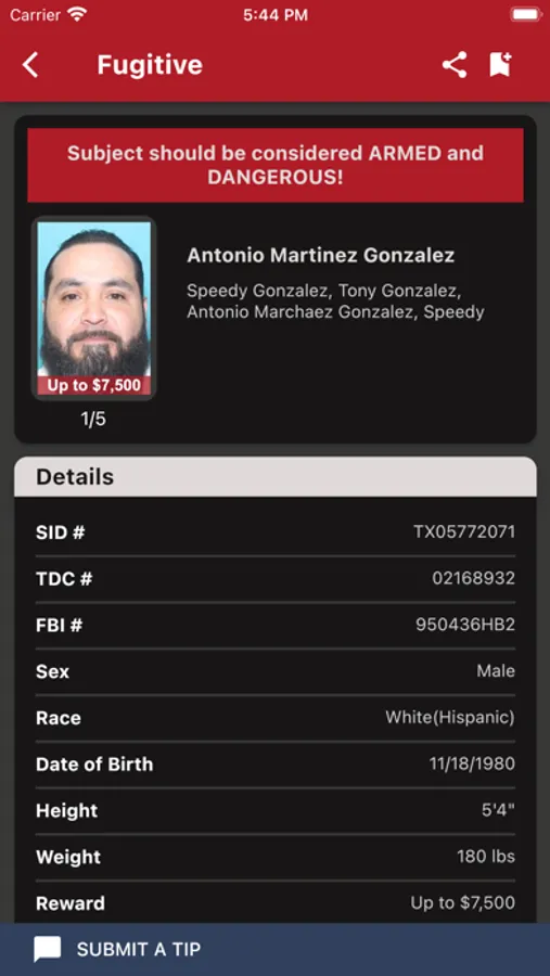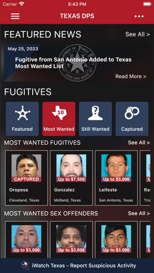 • View detailed information from the Texas 10 Most Wanted program, submit a tip or just use this app to increase your awareness, and be on the lookout for fugitives and wanted sex offenders.