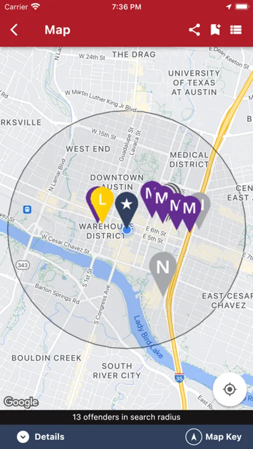 • Easy-to-use and interactive map lets you search for registered sex offenders by location, name, route and proximity.