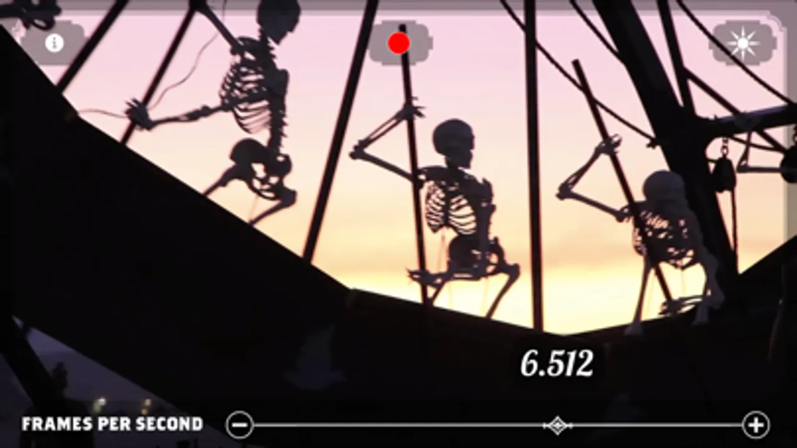 The Hudzovision app lets you experience the zoetrope animation effect without requiring darkness and a strobe light. Just launch the app and look at the installation. If the animation looks out of sync, simply slide your finger along the frame rate adjuster at the bottom of the screen, and watch as the art springs to life. You can also tap the + and - buttons to fine tune the frame rate.