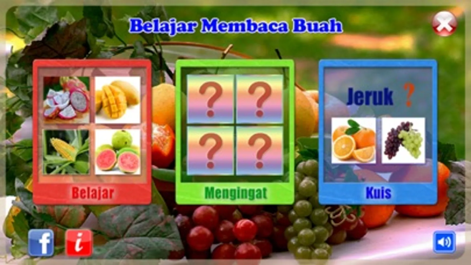 Belajar Membaca Buah adalah aplikasi pendidikan yang mengenalkan nama-nama buah untuk anak-anak atau pemula yang ingin belajar bahasa Indonesia.