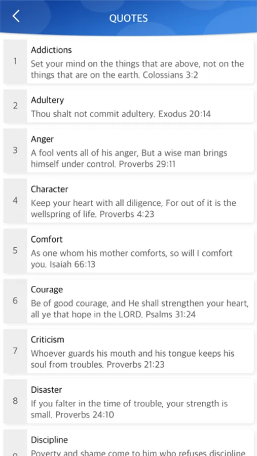 - An swift access to bookmark and back to other chapters with verses.
