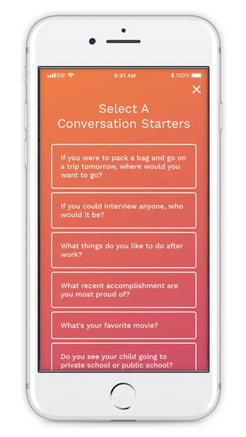 Matches share your vision and value system for how you want to start a family. Use your conversation starters and co-parenting ranking chart to let potential matches know what you're looking for and interested in.