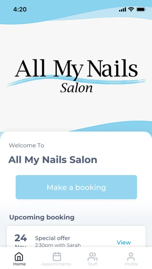 The All My Nails Salon app makes booking your appointments and managing your loyalty points even easier. You're just a few taps away from feeling good and looking great!