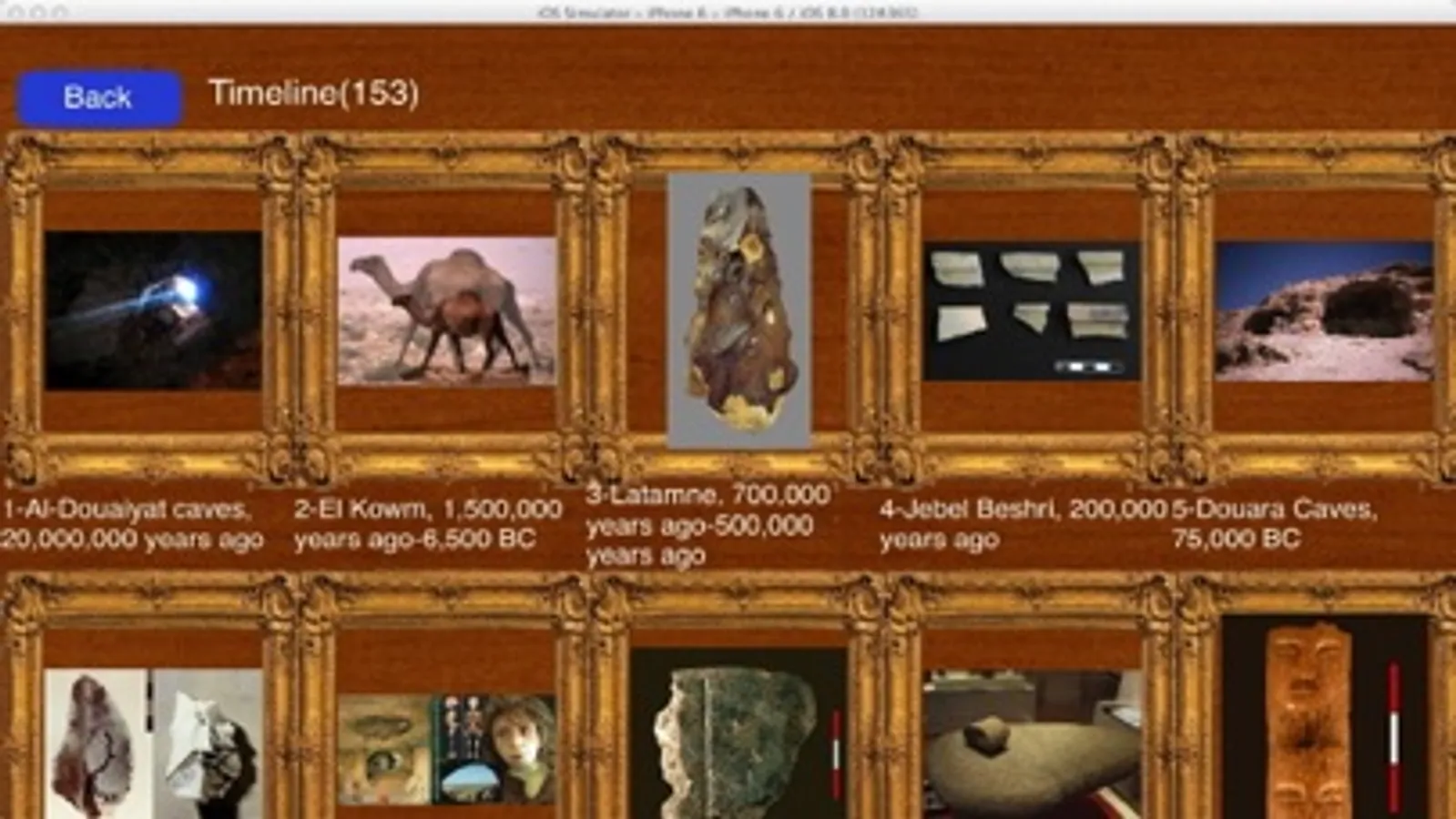 Many other claimed firsts, such as glass making, oil and wine pressing as well. Beautiful carousel layout (or grid layout can be chosen from the settings) with zoomable pictures, a brief history and many links (a setting can restrict english sites only) related to every historical place. Various menu options let you jump to a specific period (Miocene, Paleolithic, Epipaleolthic, Neolithic, Bronze Age, Iron Age, etc.), or by culture (Hurrian, Hittite, Canaanite, Phoenecian, Byzantine, etc.), by location name, or by nearby city for a site or by governate or even by picture type (ex. church, sarcophagus, cave, skull, jewellery, column , etc.). A share button is provided to share the link for the app and for sharing the source links with your friends as well to share the knowledge.