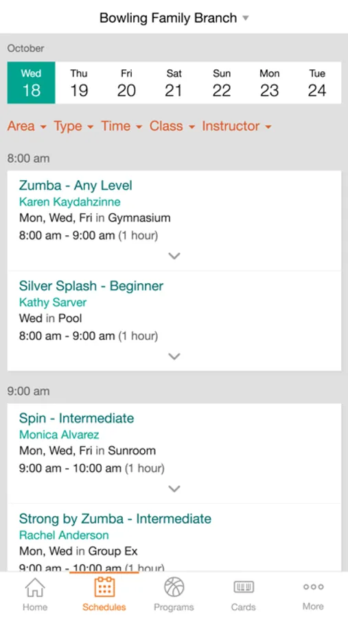 • Easily view schedules for each day and filter for the types of classes that you like.